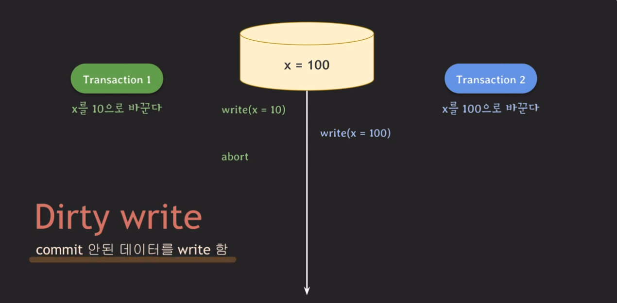 Dirty write : commit 안된 데이터를 write 함