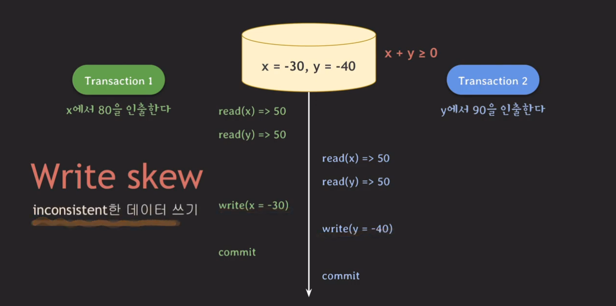 Write skew : inconsistent한 데이터 쓰