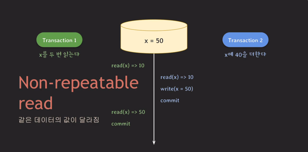 Non-repeatable read : 같은 데이터의 값이 달라짐
