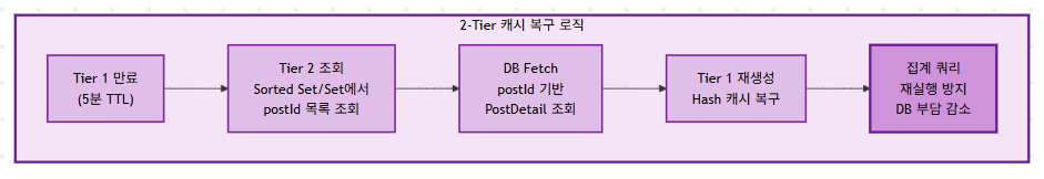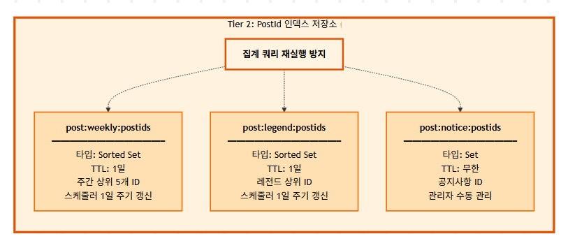 현재 캐시 스탬피드의 중점은 2Tier 캐시에서 전달받은 주간/레전드 글의 id목록을 가지고 DB에서 조회해오는 것입니다.