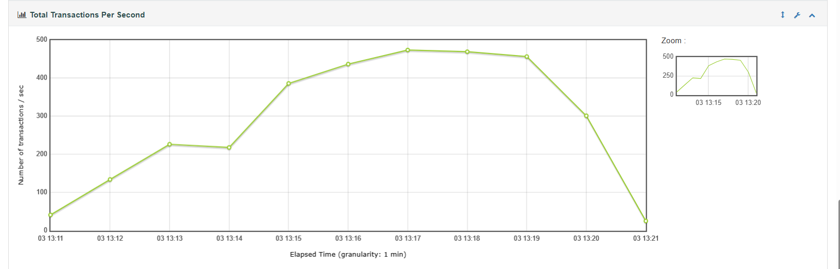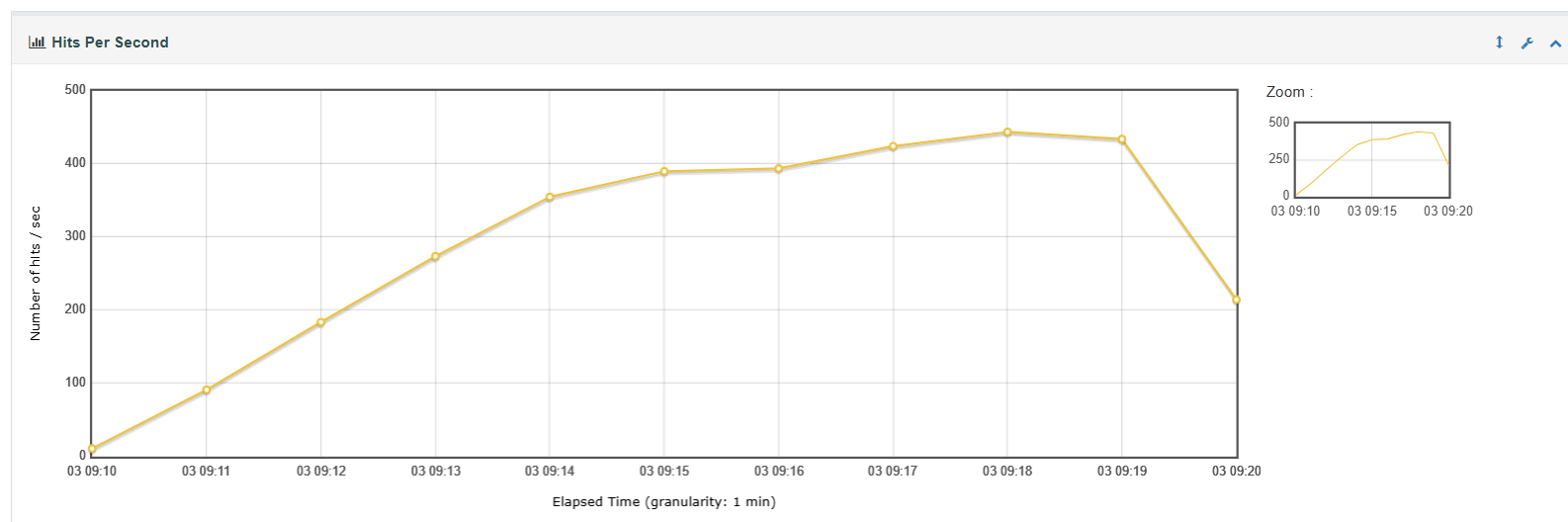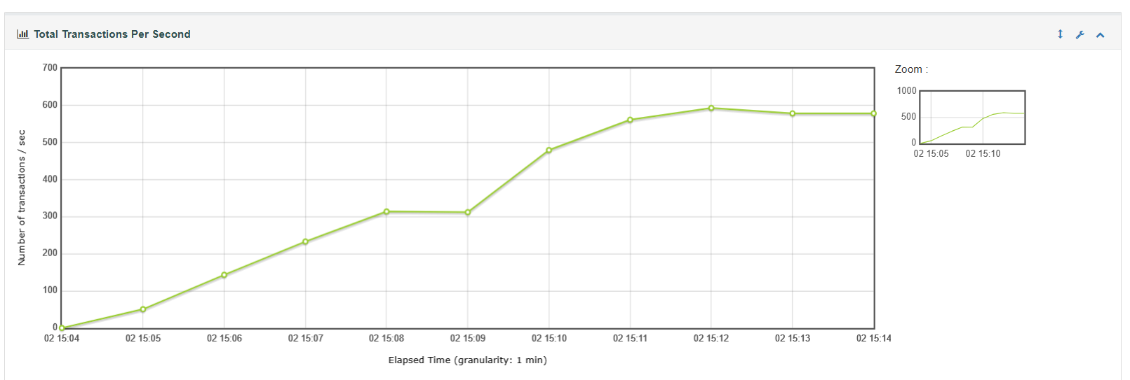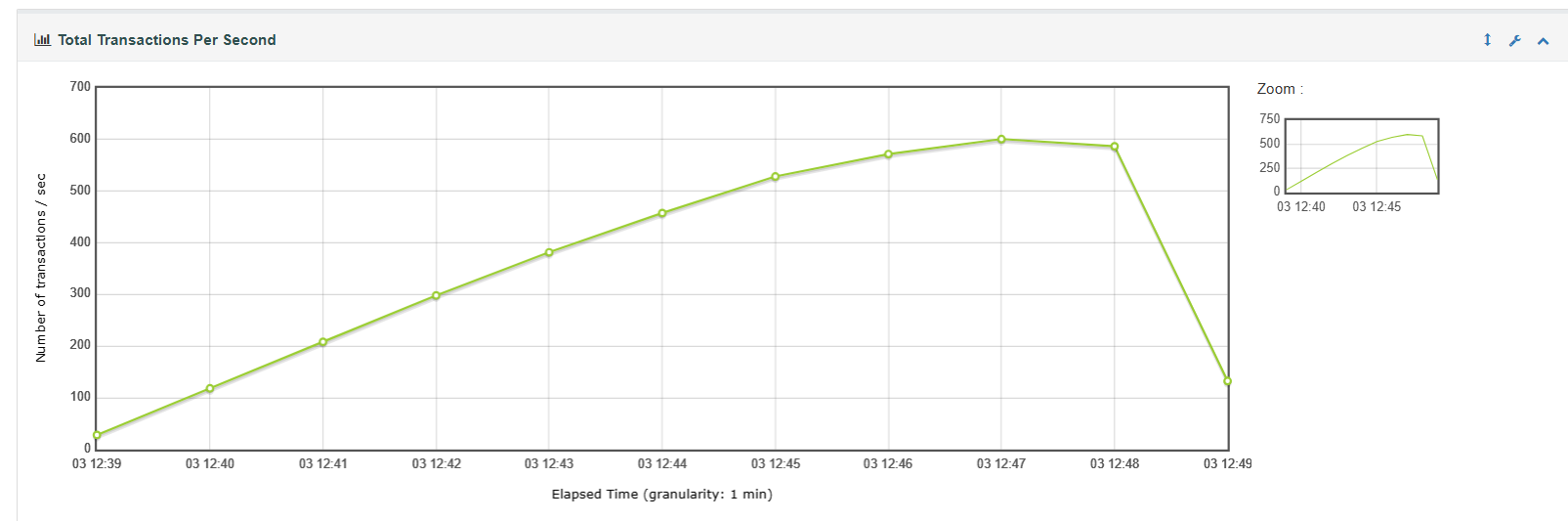 테스트 시작후 8분까지 선형적으로 램프업 해나가며 마지막 2분은 최대 부하를 유지했습니다.