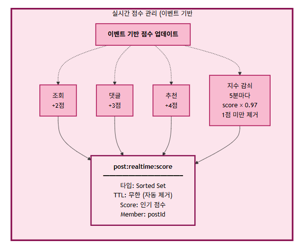 제가 테스트한 실시간, 주간, 인기글, 게시글 상세 캐시는 정합성과 정밀한 TTL이 요구 되지 않습니다.