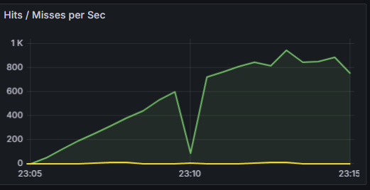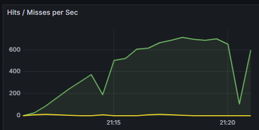 레디스 초당 히트율에서도 TTL 만료시점에 히트율이 급 감소하였습니다.