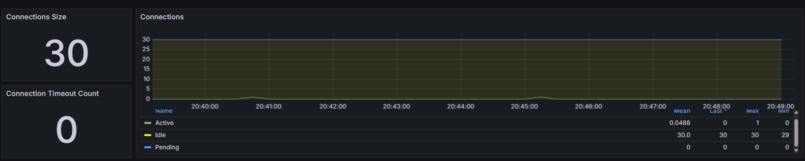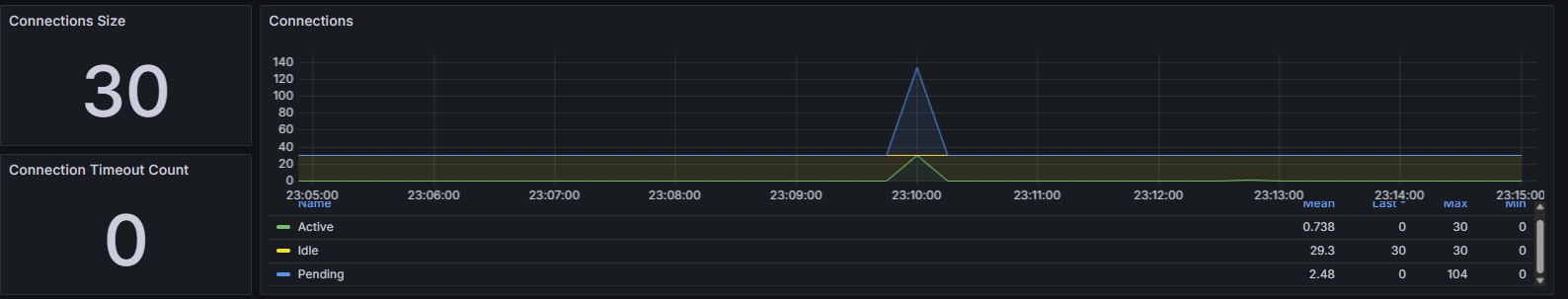 커넥션 사진을 보면 TTL만료 시점에도 커넥션이 증가하지 않았고 커넥션 병목은 해결되었습니다.