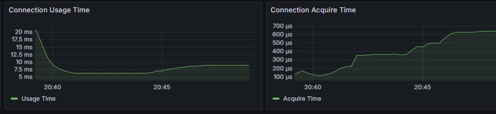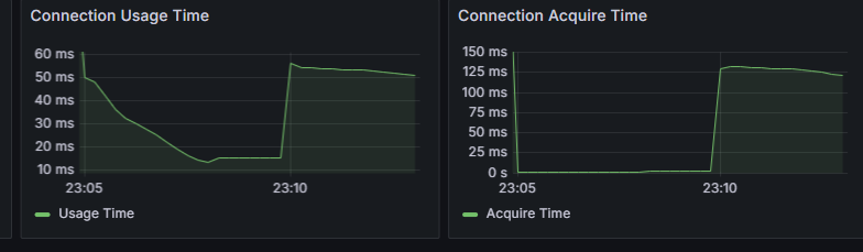 또한 커넥션 획득 시간이 최대 125ms에서 2.5ms로 50배 감소하였습니다.