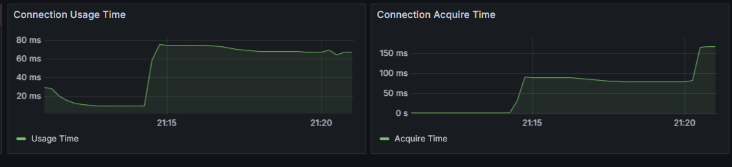 TTL 만료직후 커넥션 사용시간과 획득 시간도 폭발하였습니다.